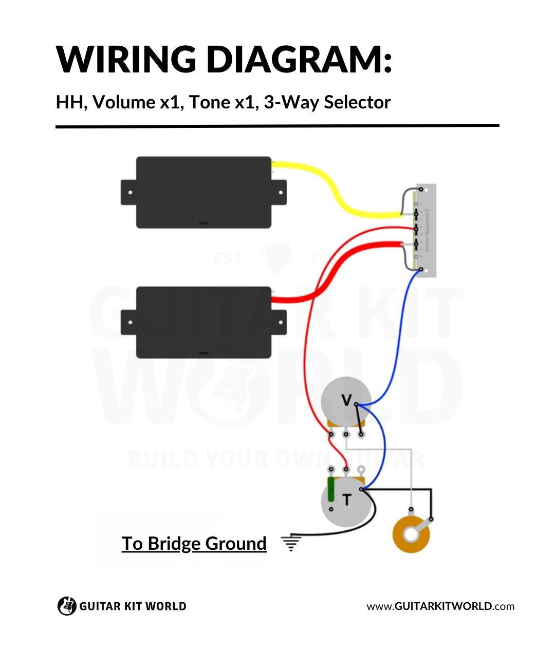 Wiring Diagram: HH, 1 x Volume, 1 x Tone, 3-Way SelectorUpdated 5 hours ago